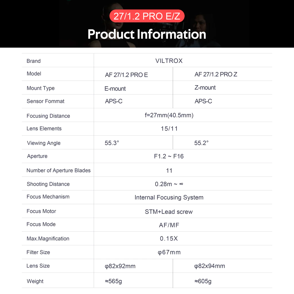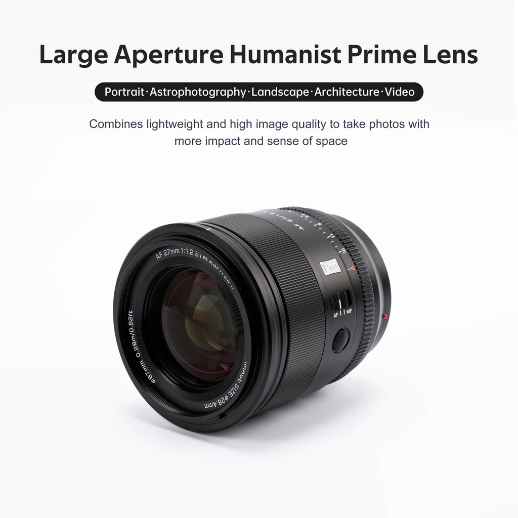 The previously reported Viltrox AF 27mm f/1.2 Pro APS-C lens for Nikon Z/Sony E mount is now officially announced and available for order: