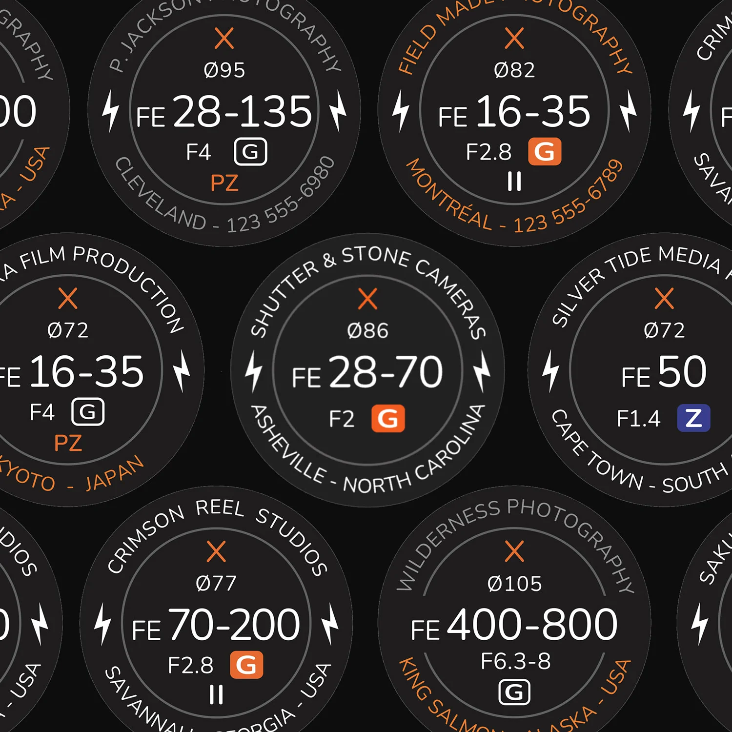 - Volume discount on individual labels: save 15% on 5–9 individual camera & lens labels, 20% on 10–14, or 25% on 15+ (discount applied at checkout)