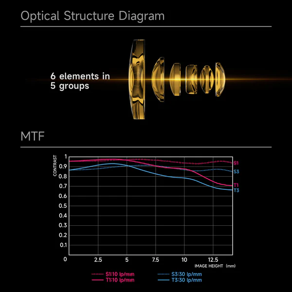 - Hyperfocal distance design: Because of the hyperfocal distance design, there is no need to adjust the focus, capture stunning images anytime.