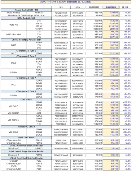 Due to the rapid increase in demand for semiconductor memory associated with the construction of AI infrastructure, and the resulting significant increase in flash memory prices, ProGrade Digital Inc. will raise the regular prices on the Amazon.co.jp ProGrade Digital Inc. store on January 8, 2026. At the same time, the exchange rate, currently $1 = 150 yen, will be changed to $1 = 155 yen to reflect the current exchange rate. Please refer to the price list for the new regular prices.