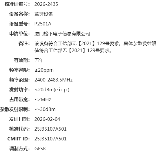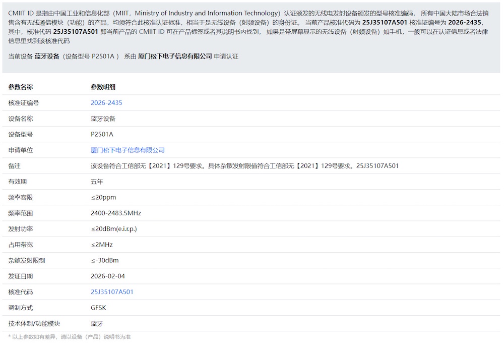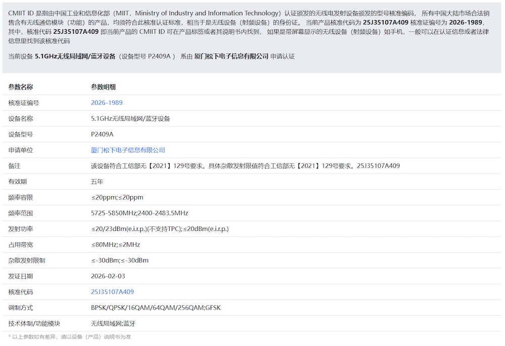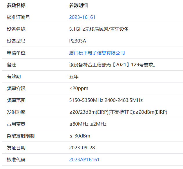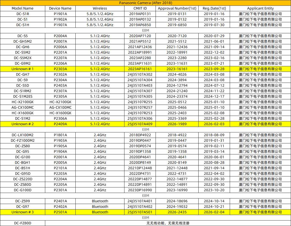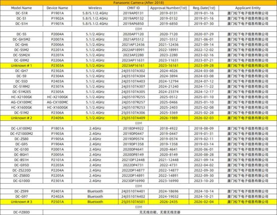 Including the previously registered P2303A model (dual-band WiFi 5), this brings the total number of unreleased Panasonic cameras to three: