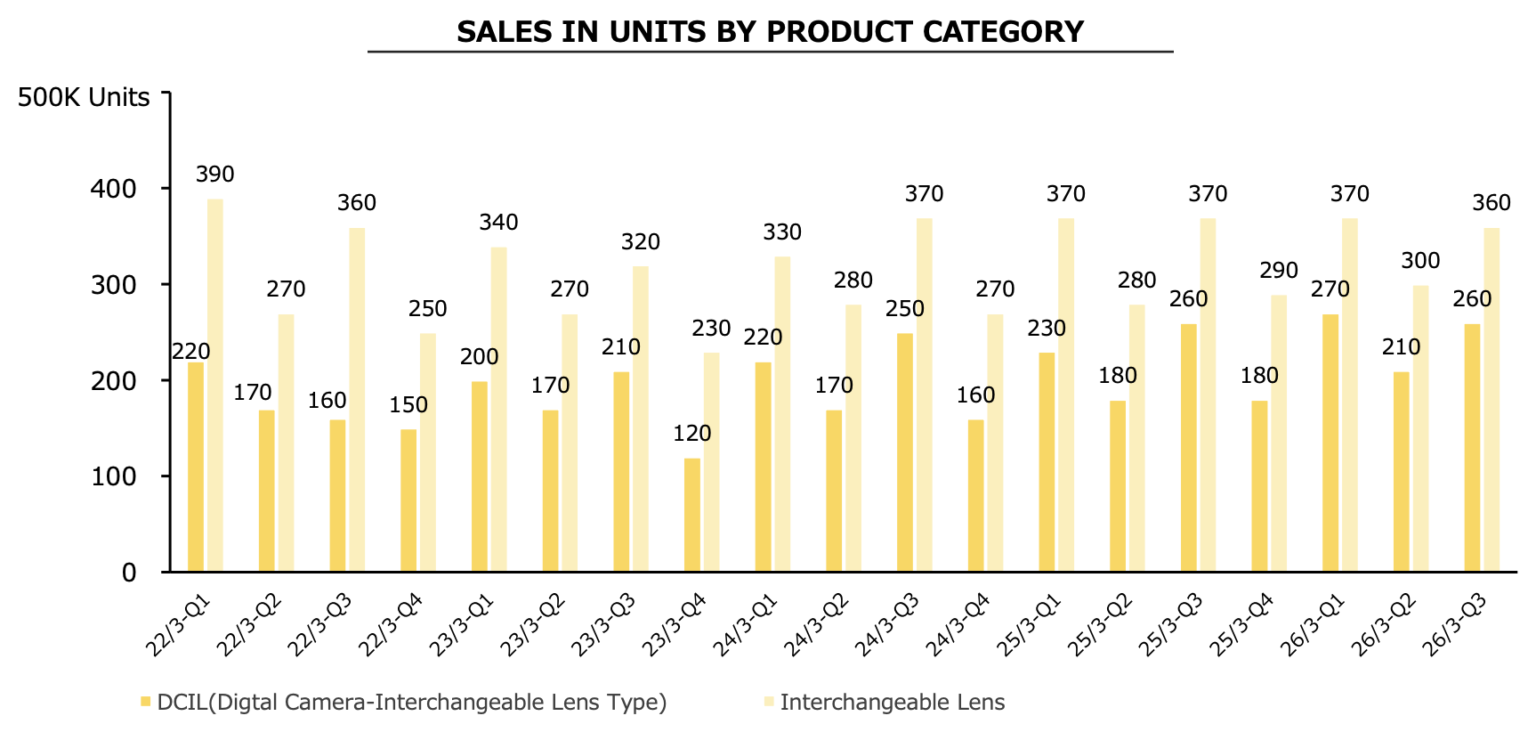 - Consumer Camera Performance (Under Lifestyle/LAS): LAS reported Q3 sales of 224.4 billion yen (94% YoY) and adjusted OP of 12.6 billion yen (down 5.3 billion yen YoY). Within this, consumer electronics (including AVC/cameras) saw decreased sales due to weaker demand in overseas markets, despite steady sales in Japan. No specific sales or profit figures were provided solely for cameras, but the overall decline in consumer electronics suggests softness in the camera category. This aligns with broader market challenges for consumer AV products.