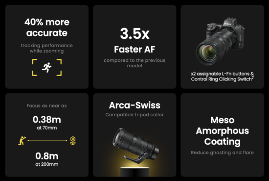 The previously rumored Nikkor Z 70-200mm f/2.8 II lens is now officially announced: