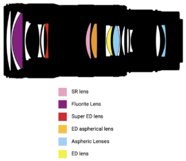 - Lightest in its class. 26% lighter than its predecessor, thanks to thinner lens elements and a reduction in the total number of elements in the optical design.