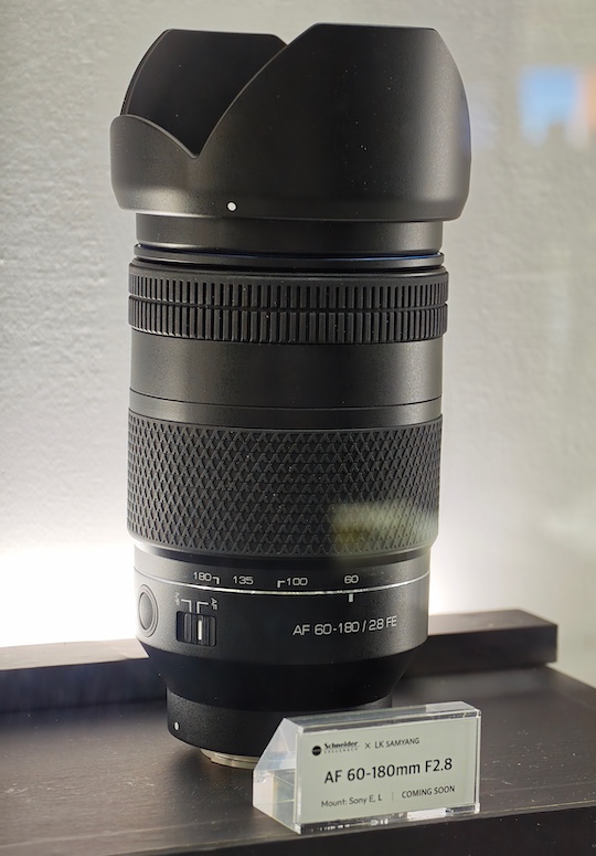 Here is the rumored Schneider Kreuznach x LK Samyang AF 60-180mm f/2.8 lens – on display at the 2026 CP+ show in Japan (previously reported here):