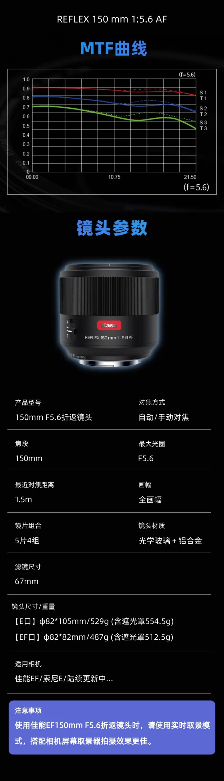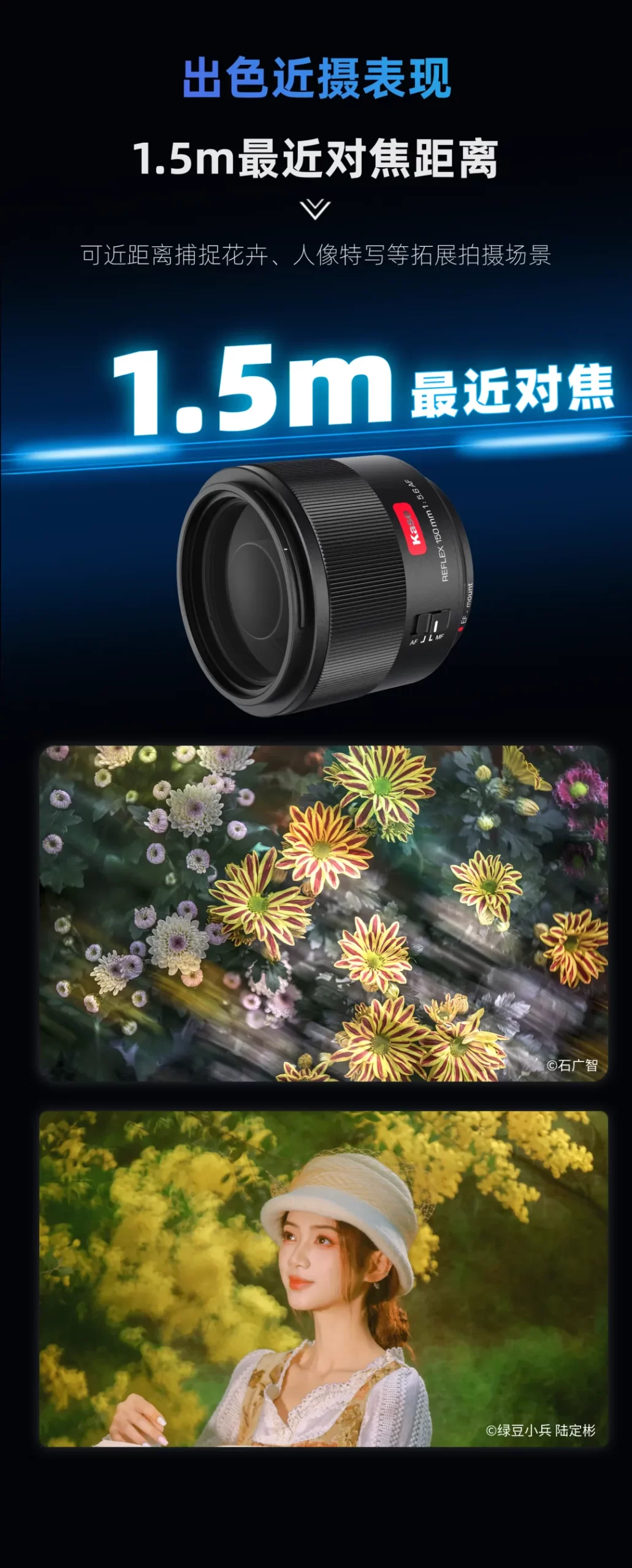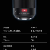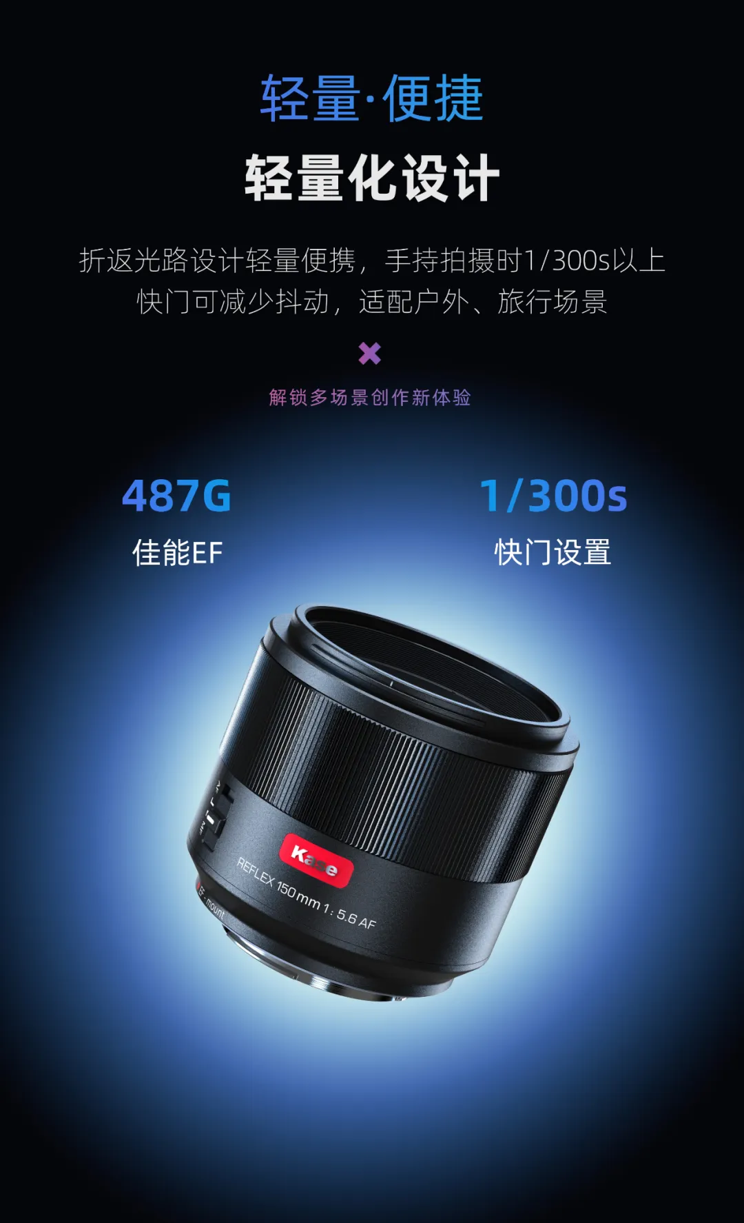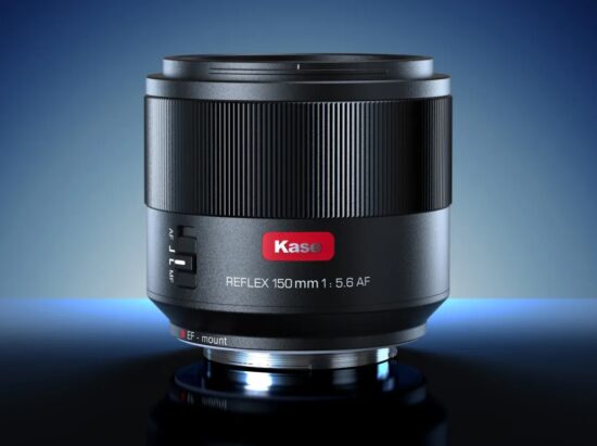 The previously reported Kase 150mm f/5.6 reflex autofocus lens (E/EF) is now officially released in China. The lens features a magnetic front ring for filters.