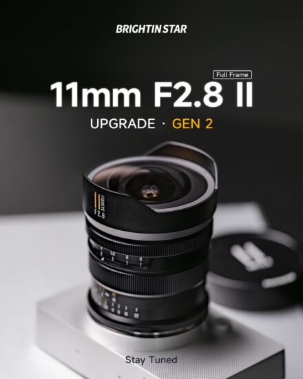 Brightin Star will soon announce a new 11mm f/2.8 II full-frame fisheye lens – this will be the second generation of the current Brightin Star 11mm f/2.8 model.