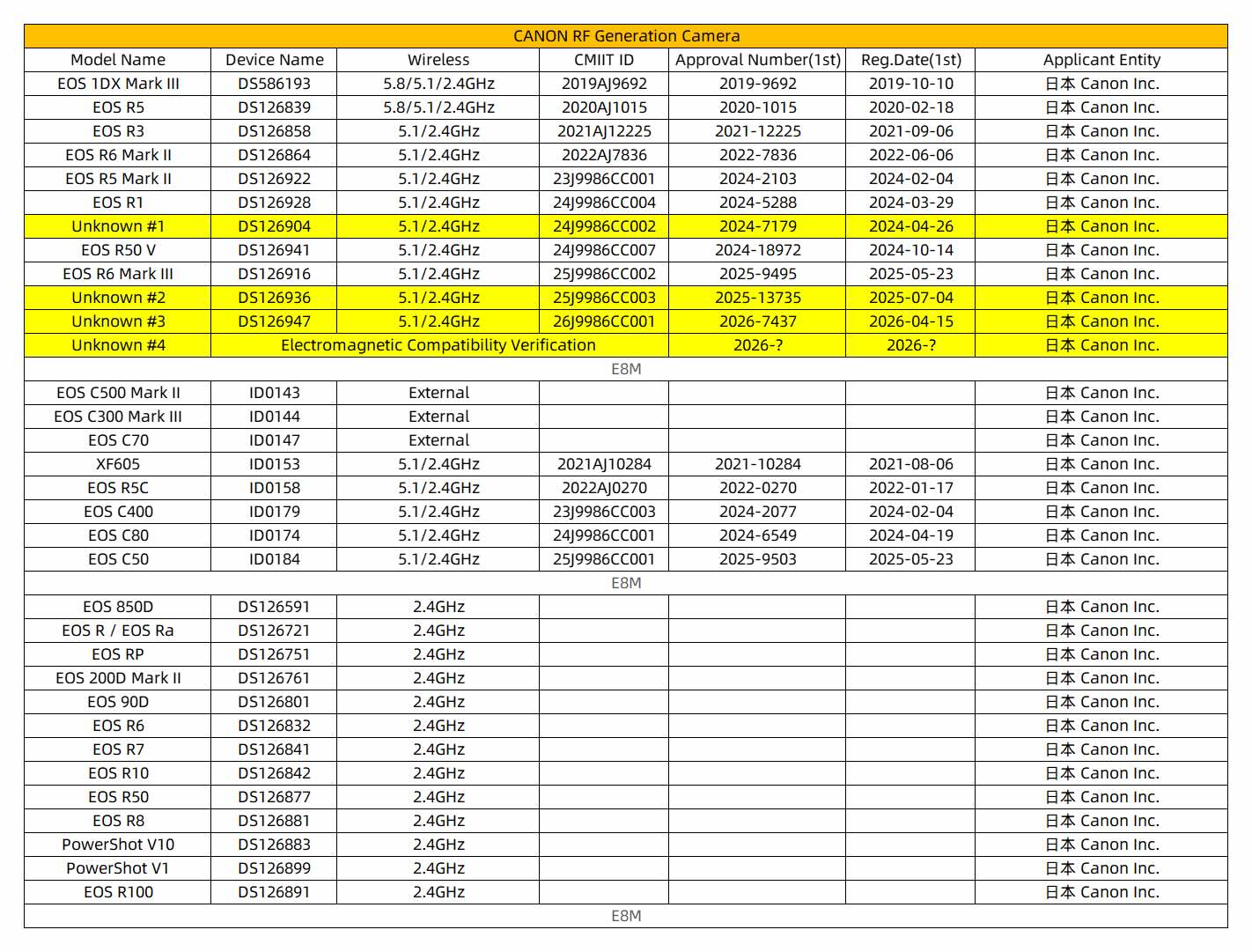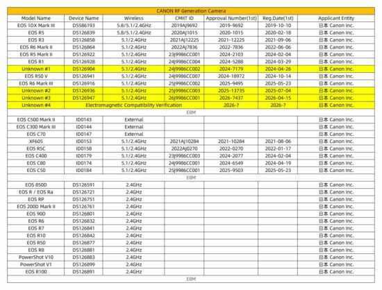 Canon has several newly registered cameras that are yet to be officially announced: