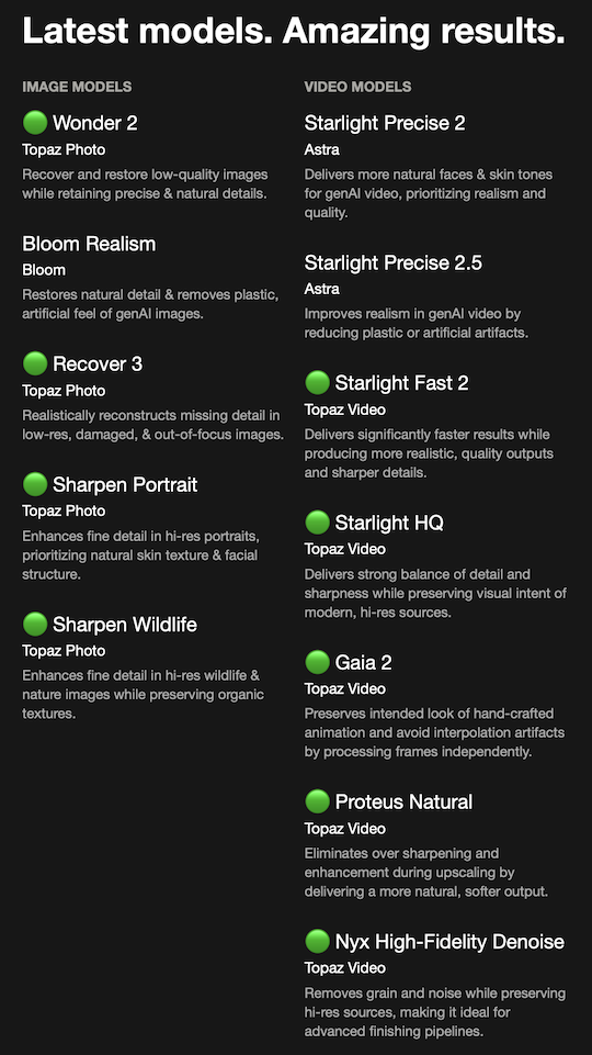 | Photo Plus Bundle (Includes Topaz Gigapixel, Topaz Photo, Pro models, and 100 monthly credits) | $129/yr |