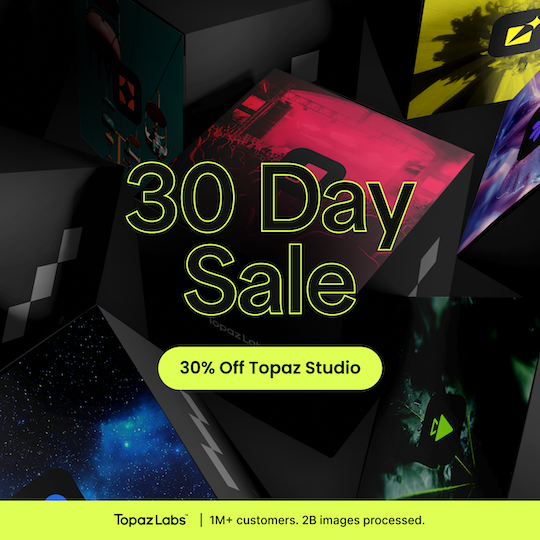 Topaz Labs started a new 30% off sale through May 14th on their most popular products, including Topaz Studio, Topaz Photo, and Topaz Video: