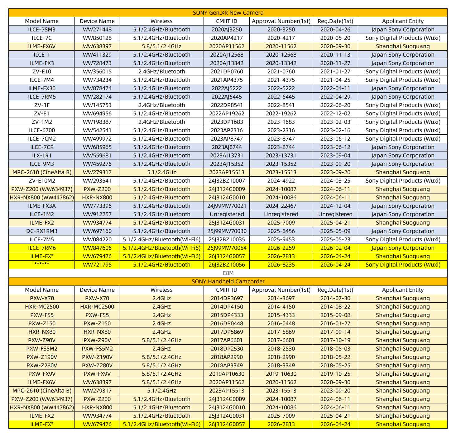 Sony has registered a new Sony WW721795 camera overseas without Wi-Fi 6, which will most likely be a new ZV model or an entry-level mirrorless camera. Sony has also registered a new Wi-Fi 6 camcorder under the code name WW679476. In total, Sony now has at least three upcoming products: a high-end flagship, a video camera, and an entry-level model. Mapping this to some of the existing rumors – this is what to expect:
