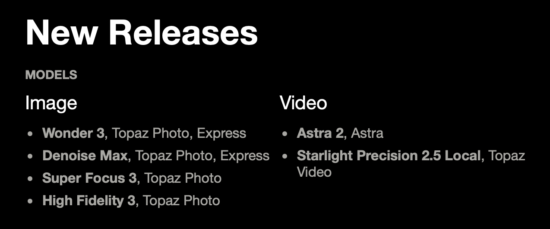 Topaz Labs released 6 new models for their photo and video apps (Topaz Studio, Topaz Photo, and Topaz Video).