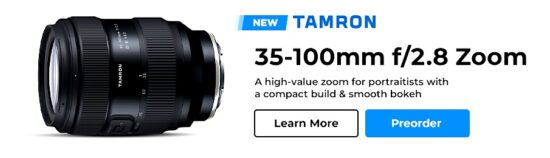 The previously reported Tamron 35-100mm f/2.8 DI III VXD lens for Nikon Z and Sony E-mount cameras is now officially announced, along with a new Tamron Link accessory for wireless lens control.