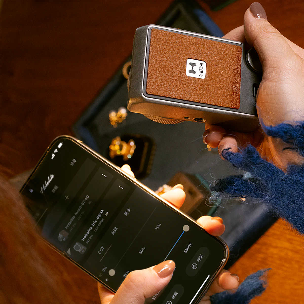 The Hobolite Iris stands out with its sleek IP54-rated aluminum body, wrapped in an attractive vegan leatherette, making it an ideal companion for both indoor and outdoor use. Its unique aperture ring empowers photographers and content creators to adjust from a focused beam to a wide glow, to light stories with precision and style – anywhere and anytime.