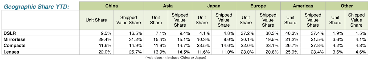 Highest shipments of the calendar year so far for DSLRs, Mirrorless, Compacts and Lenses for cameras with smaller than 35mm sensors. But cumulatively, DSLR units are down 38% compared to 2023 and lenses for smaller sensors are down 3.2%.
