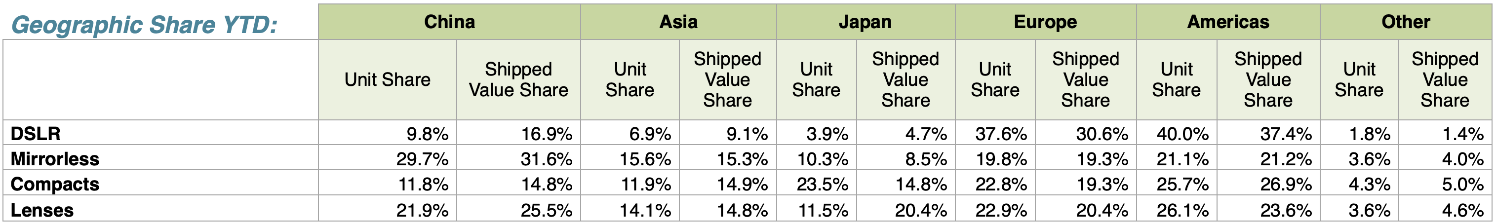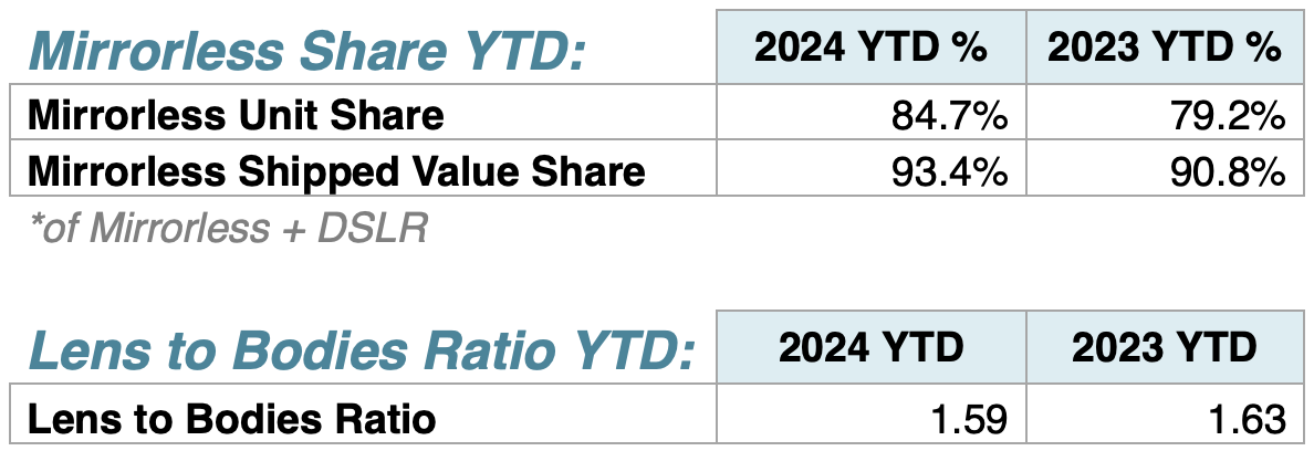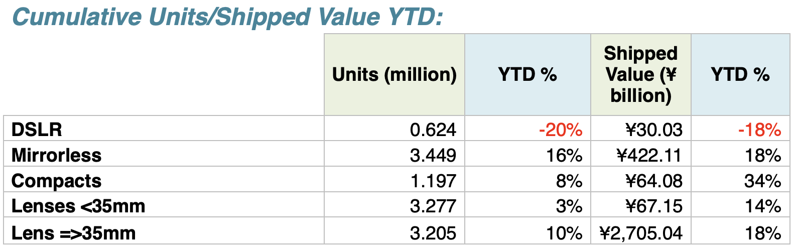 Highest shipments of the calendar year so far for DSLRs, but everything else below 2024 peaks. Cumulatively, DSLR units are down 20% compared to 2023. Everything else is up.