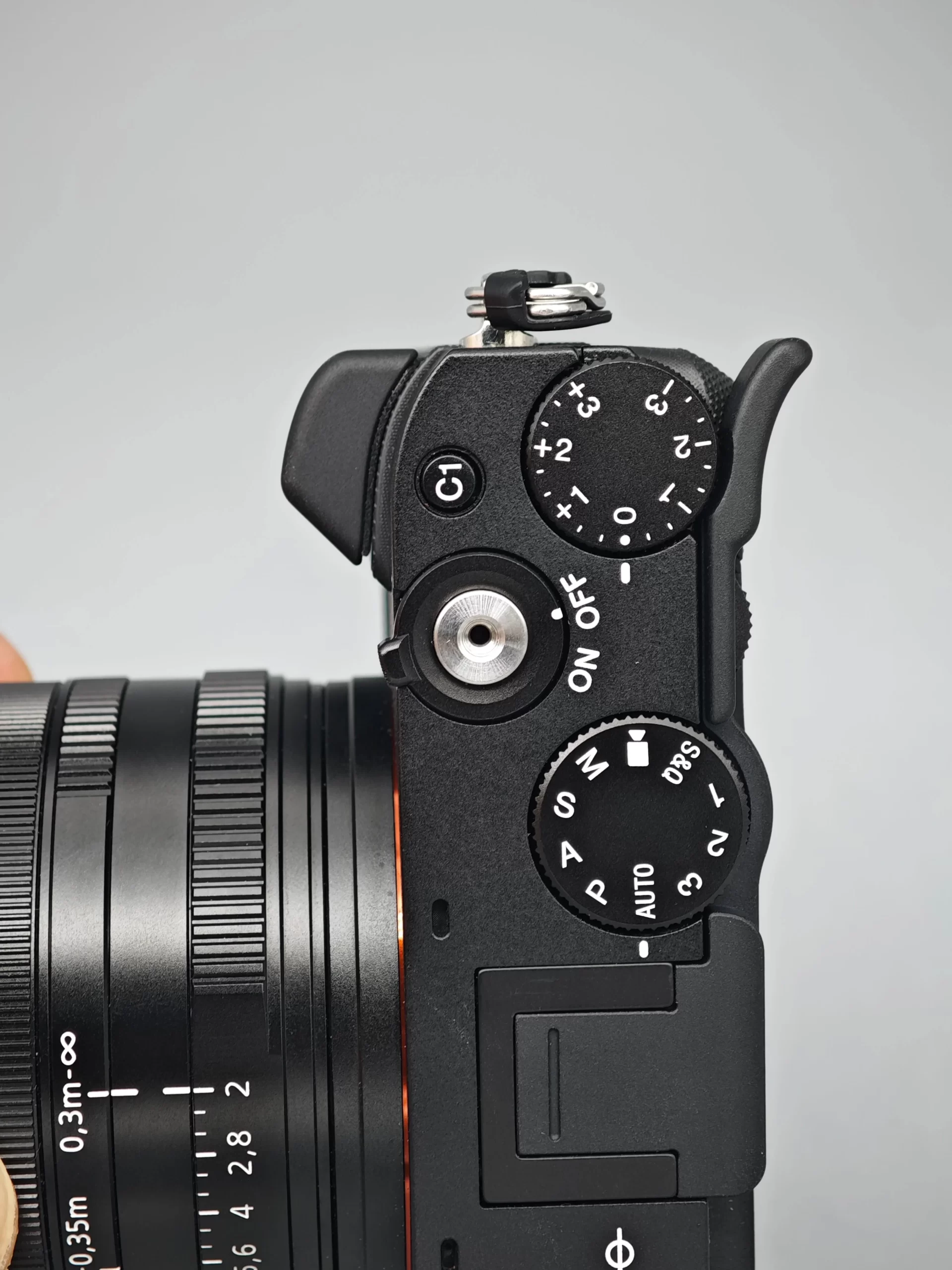 - Mode dial adjustable without flipping up the thumb grip.