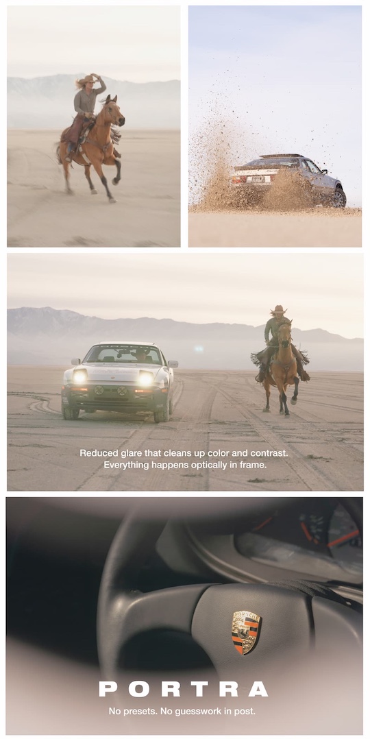 “The Portra Filter embodies the color profile of the classic PORTRA 400. The glass delivers a soft, organic Portra style look and feel straight out of camera. The glass combines a custom color tone, white mist diffusion, and chroma polarizer, which creates warm highlights, natural skin tones, and controls unwanted glare.”