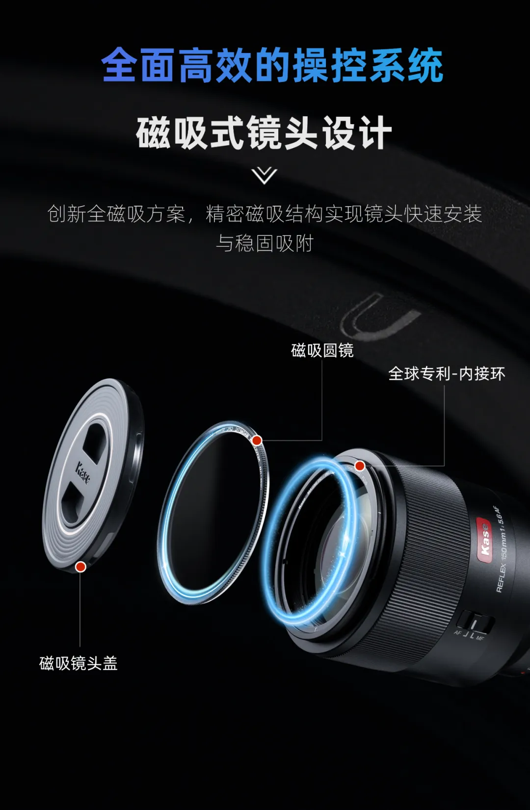 The previously reported Kase 150mm f/5.6 reflex autofocus lens (E/EF) is now officially released in China. The lens features a magnetic front ring for filters.