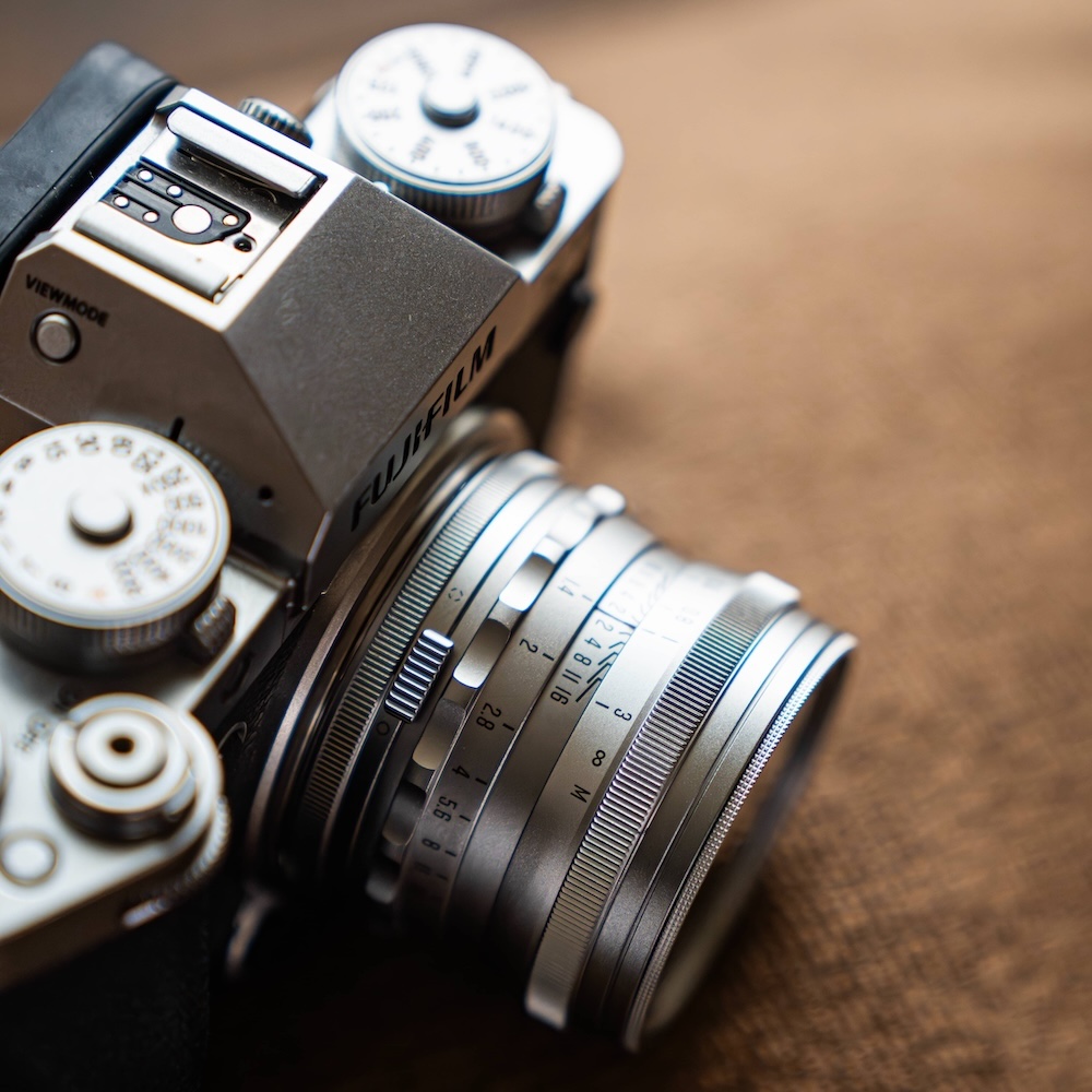 Brightin Star 28mm f/2.8 silver pancake lens for Leica M-mount.